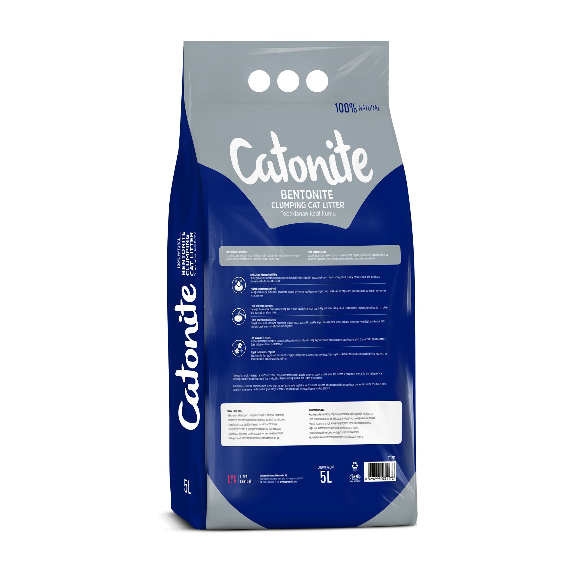 Özellikle yavru kediler ve uzun tüylü kediler için büyük granüllü, düşük toz özelliğine sahip kedi kumudur.